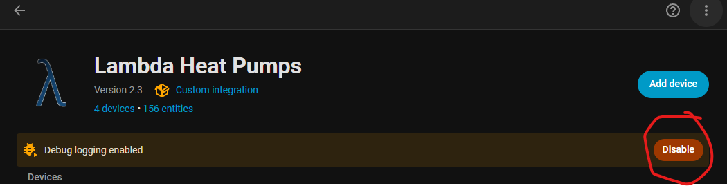 Um Fehler zu analysieren oder detaillierte Abläufe der Integration zu prüfen, können Sie die Debug-Protokollierung für Lambda Heat Pumps einschalten.